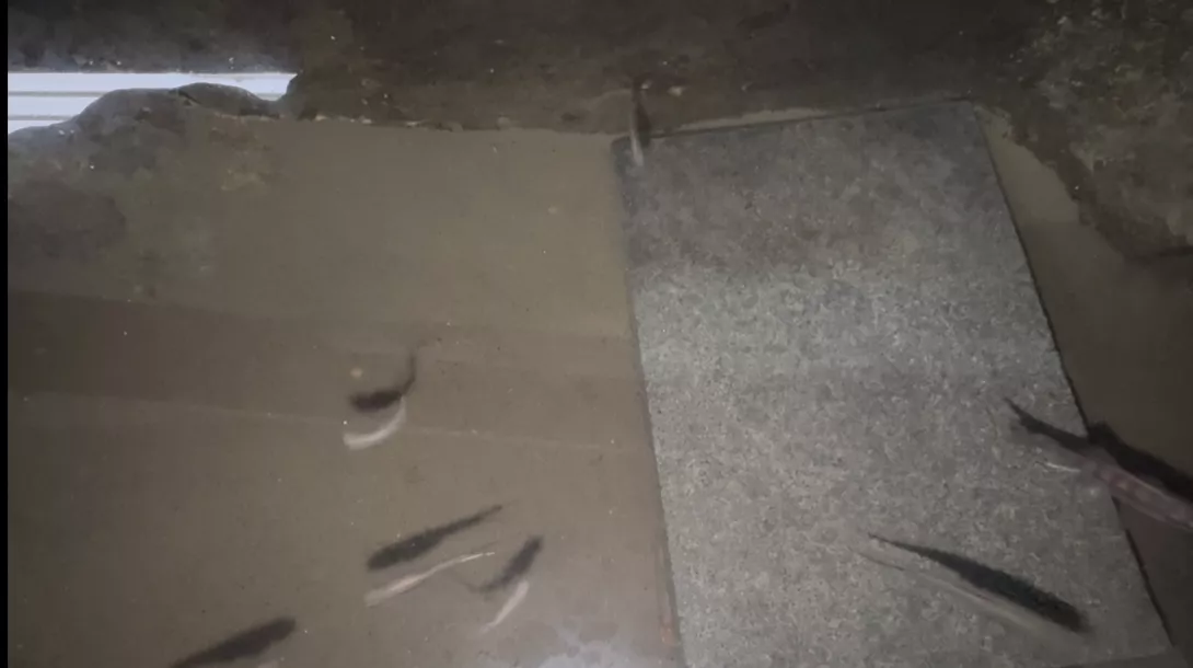 OS.新北深坑炮仔崙山區,隱藏在山林間,有座歷經百餘年,仍有人居住的土角厝,蔡氏兄弟為保留祖先,留下的祖屋,依照古法,每隔3到4年,必須翻修補強,以泥土混稻草,做成土角砌牆,屋內有座石砌水缸,缸內養魚,蔡家老五說,為確保水質,魚還活著,表示水質沒有問題