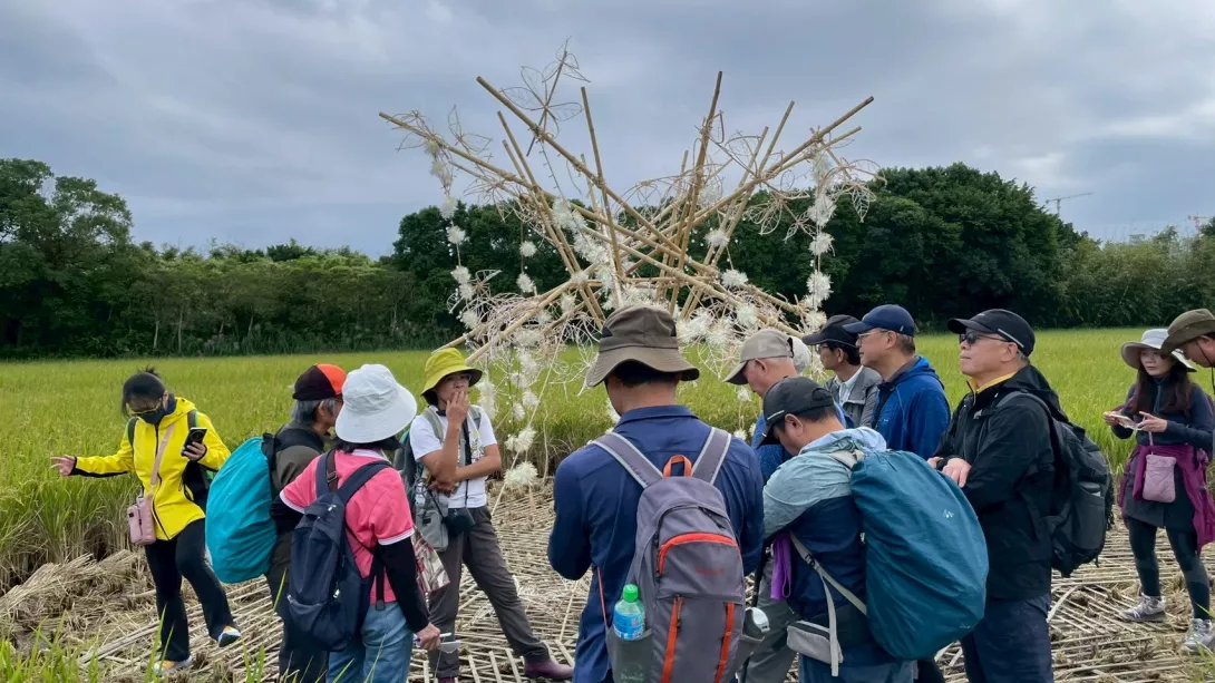 今年的藝術祭主題是「穗光稻影、最美河川」,農地裡的稻草⼈會迎⾵守候著稻⽶,也歡迎每⼀位嘉賓的到來。