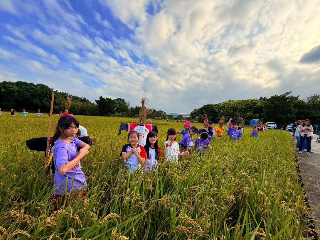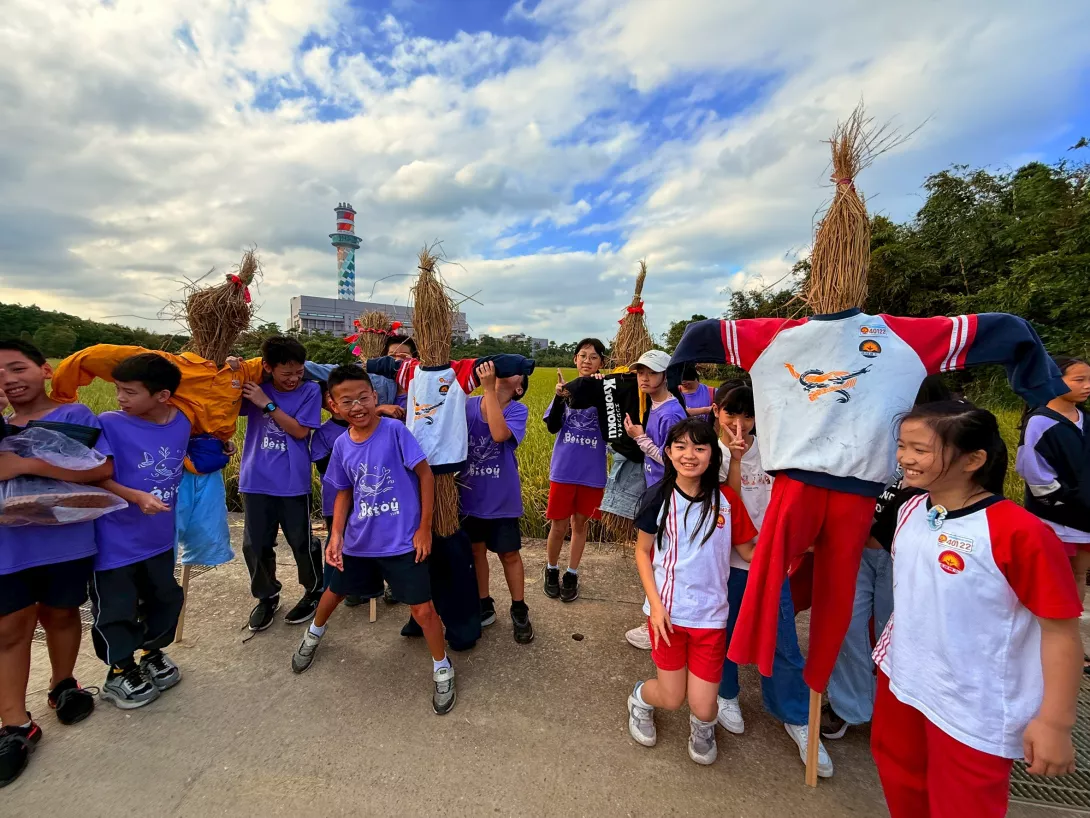 北投國小老師江慧娟說: 透過這次做稻草人,跟稻草人去農田郊遊的這個活動,讓孩子可以跟土地有一種親近的機會,他們其實沒有什麼樣的機會,可以去農田裏面去踩踏農田,那也通過手作的這樣子的活動方式,然後去從稻草這塊,跟這個農田有一些不一樣的一些接觸的感覺,然後也透過分工合作啊,然後透過農田的一些可能農事,可能拔草在玩,讓孩子對於這塊土地有多一點點的認識。