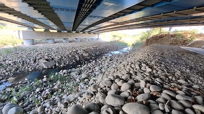 行經知高橋下時,可見大量鵝卵石淤積,沉積高度接近橋墩底部,