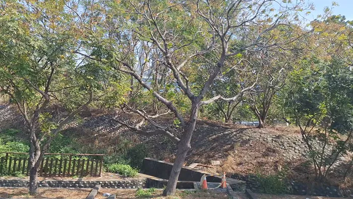 沿途可見象草、青葙、水丁香與強勢外來種銀合歡。