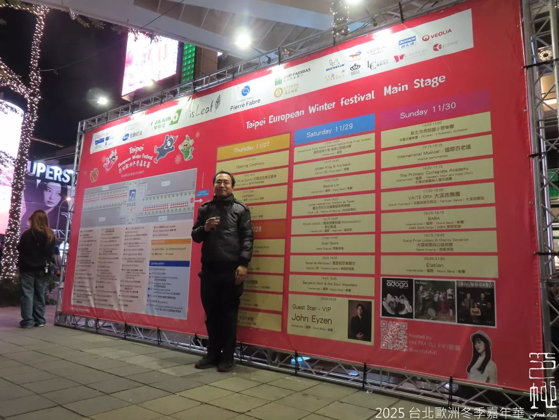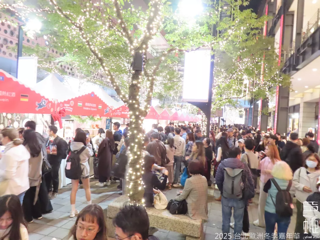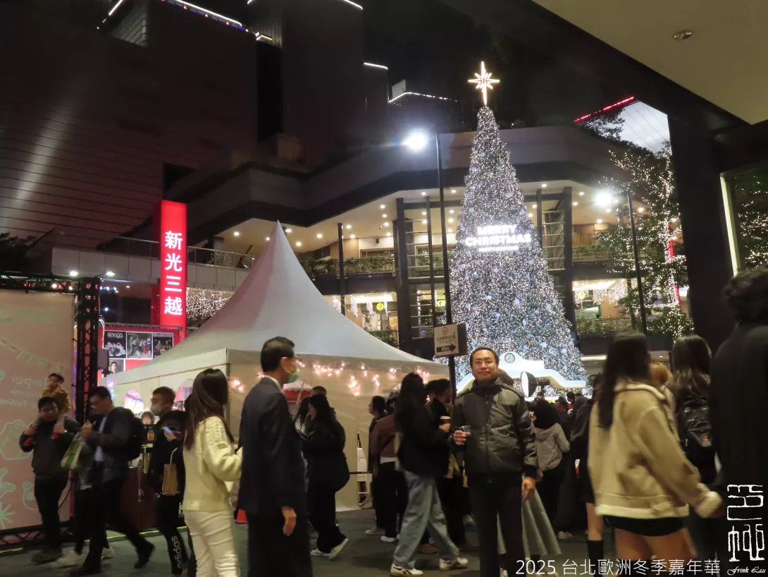 台灣法國人協會主辦、之前稱為「台北歐洲聖誕市集」的「台北歐洲冬季嘉年華」2025年11月27至30日於信義新光三越香堤廣場舉行,帶來美食、佳釀、歌舞、遊戲,當晚氣溫 18℃ ,現場巨型聖誕樹噴灑泡泡模擬雪花,人潮洶湧、氣氛歡樂,雲香鬢影、美不勝收,本篇由 Frink Lau 劉天倫攝於 11 月 28 日