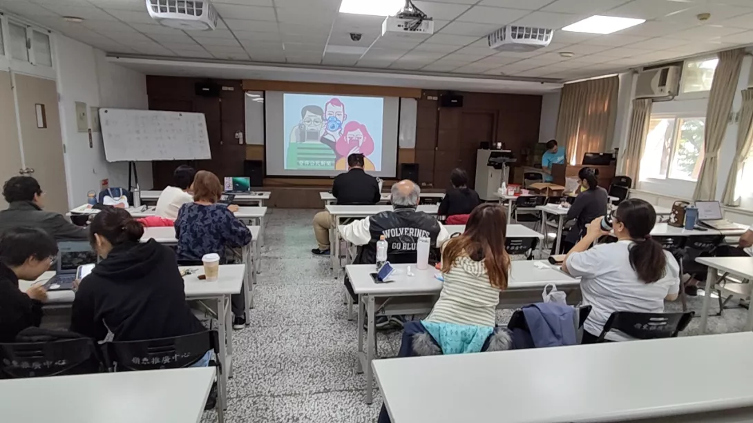 社大全促會議組專員梁芊兒嬅:上課的那個氛圍很不像,就是剛暑假或是剛上一學期就大家互動很好,然後也都很主動,然後會給回饋的,對我覺得一方面可能是像同學說的,就是因為老師很認真,所以我要回饋老師的認真,所以我也會交這影片,然後看到同𡦃很認真,我也想給同學回鱝,大家是蠻良好的互動,然後希望大家可以繼續下去;就是在北部我們這樣北北基桃,然後北部有12所,中部的話就是中彰投這個裡有2所,然後南部就是雲嘉南那些是2所,所以喱今年就是很高興,南湖社大成為中部第三所有公民記者的社大,而且大家就是人數,人數比預想的還要多,因為通常公民記者班對於現在來看說,不能講說是票房毒藥,但是大家講公民記者,就覺得好像很嚴肅這樣。