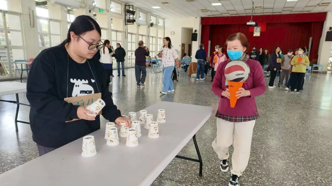 學生們設計了許多的遊戲,帶領長者們共同闖關,而長者們也都非常的配合,熱情的回應他們。現場笑聲不斷。