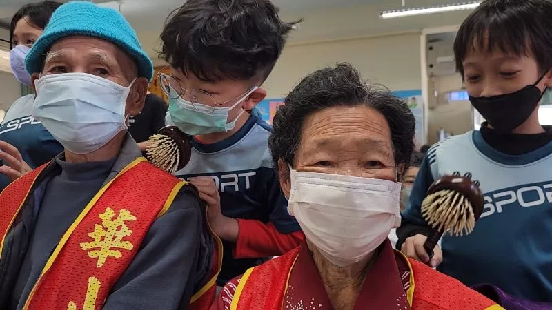 由全校師生為阿公阿嬤們