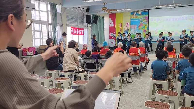孩子們為阿公阿嬤演出耳熟能詳的歌謠