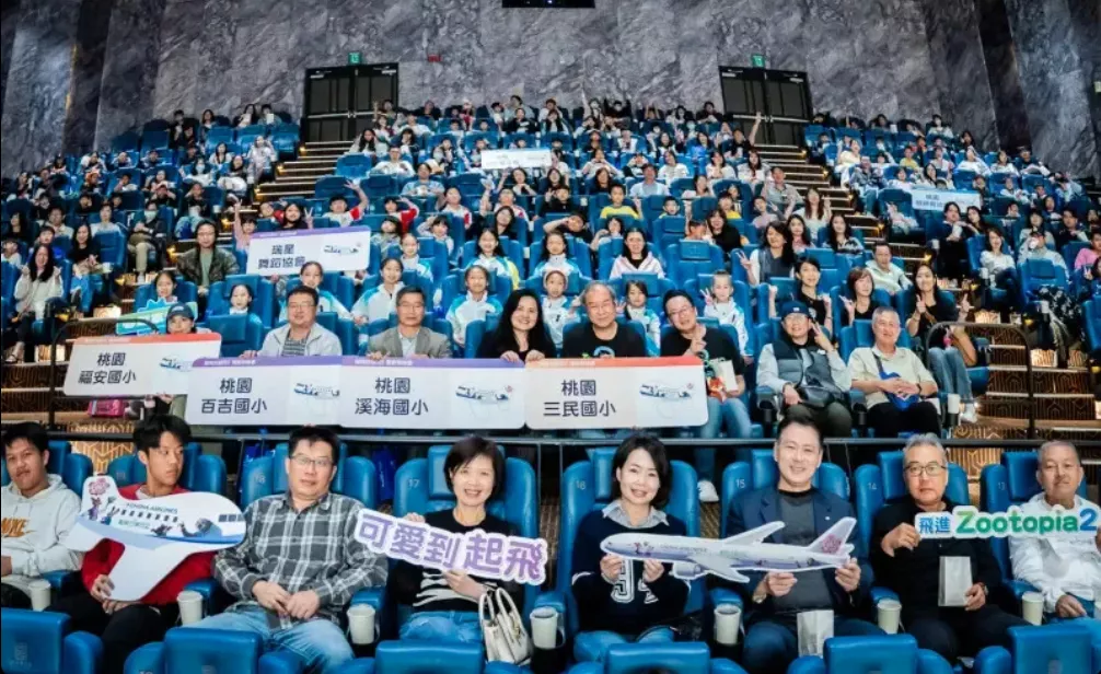 中華航空推出全台首架「動物方城市 2 主題彩繪機」後,引發社會熱烈討論,於台北松仁威秀影城舉辦盛大電影特映會,邀請桃園在地家扶中心、睦祥育幼院、溪海國小、百吉國小、福安國小、三民國小,以及多次代表台灣出賽並屢獲佳績的瑞星舞蹈協會,共近四百位大小朋友齊聚觀影。華航董事長高星潢與總經理陳漢銘親臨現場,希望透過電影中勇於追夢的精神,帶給孩子們鼓勵與力量,現場洋溢熱烈而溫暖的氣氛。