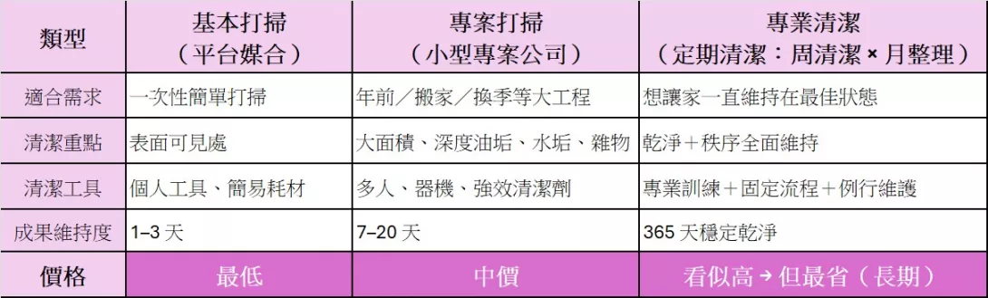 ✔ 想讓家永遠維持舒服、穩定、有節奏 → 定期清潔(周清潔×月整理)