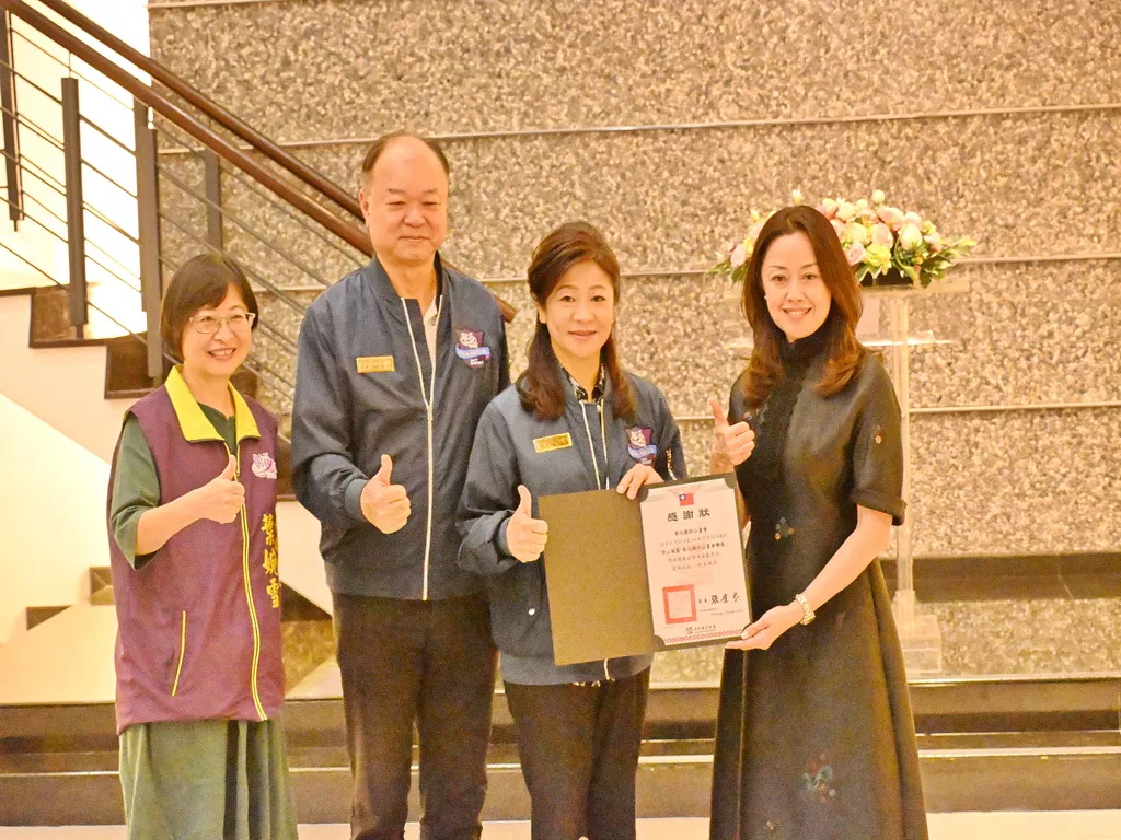 ▲卦山畫會理事長溫美虹接受彰化縣政府的感謝,感謝她與會員致力提升彰化縣藝術創作的能見度。(圖/記者周厚賢攝)
