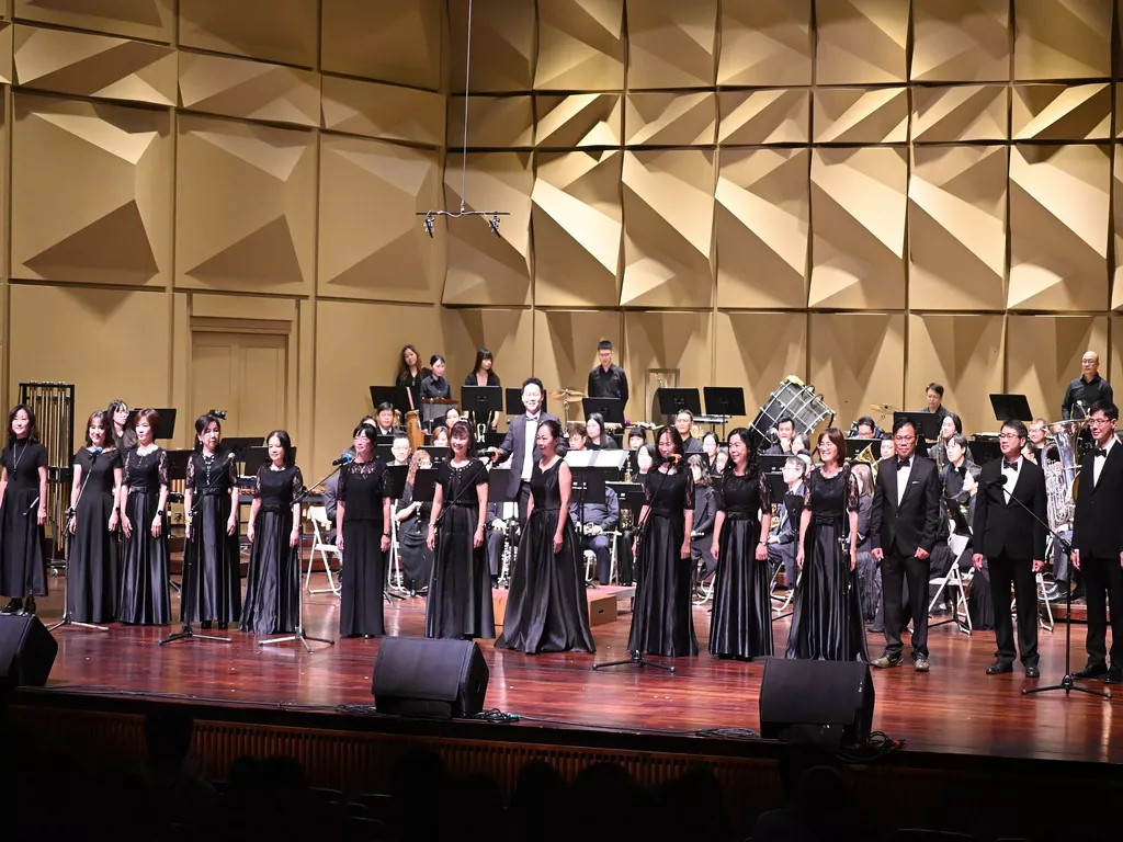 對這支七年前成立管樂團之前就已累積三十年深厚技法與默契的管樂校友而言,每年曲目創新是團隊不變的信念。今年在指揮吳孟儒的巧思編排下,節目跨越多元風格:從美國風情畫、中國傳統民謠、西班牙隨想曲、日本演歌,到影集諾曼地大登陸主題曲,以及國樂改編曲、節奏鮮明的敲擊與交響元素,完整呈現豐富的音樂層次。壓軸段落則由合唱團演唱〈千言萬語〉、〈何日君再來〉、〈我只在乎你〉等經典歌曲,一連串旋律讓滿場校友深受感動。最後全場大合唱的〈我只在乎你〉更讓不少彰商校友激動落淚——那是屬於青春、師生情誼與同儕間最深刻的共同記憶。