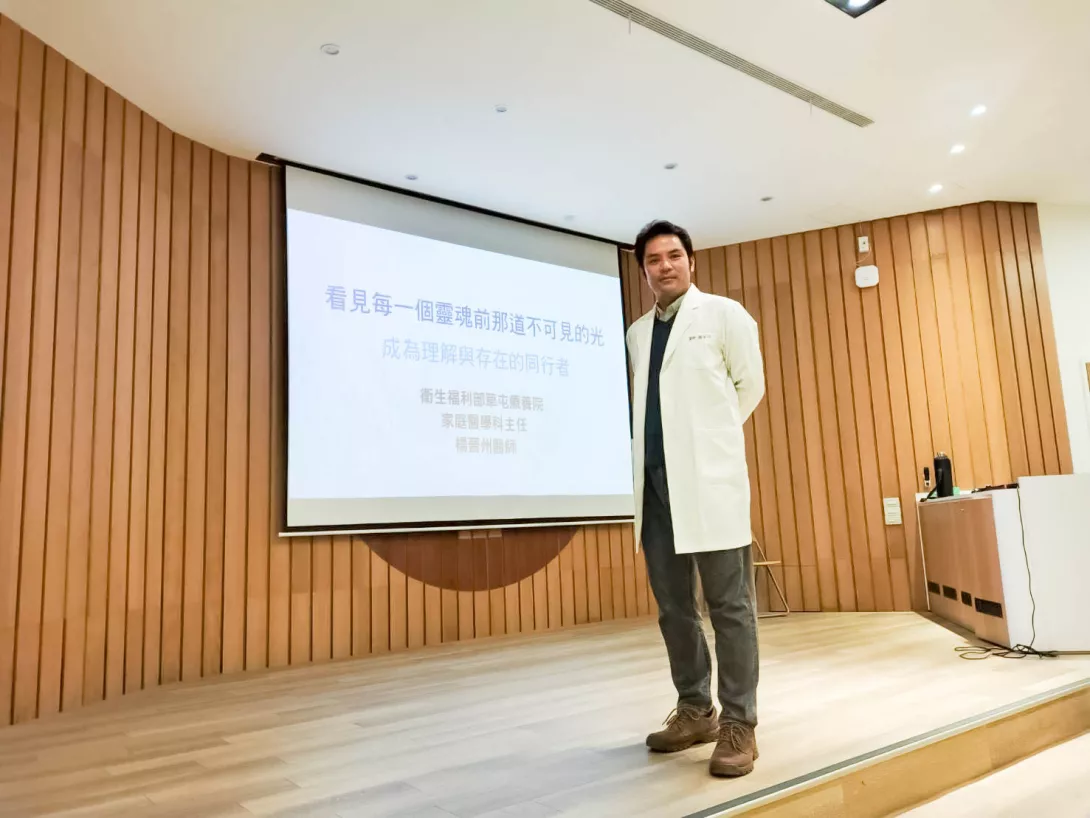 衛生福利部草屯療養院家庭醫學科主任楊晉州醫師今日(12月3日)應國立暨南大學附屬高級中學邀請,擔任年度特殊教育知能研習講師,主講「看見每一個靈魂前那道不可見的光——成為理解與存在的同行者」。楊主任以兼具故事性、音樂性與深度哲思的跨域敘事方式,引導教師從多元角度探索孩子的內在世界,獲得現場熱烈迴響。