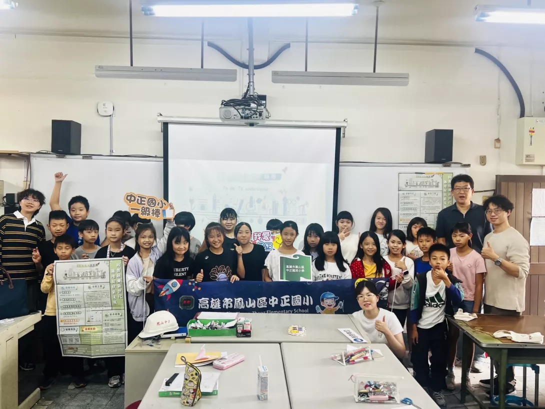 【圖一】「這樣教我就懂:科學探究競賽」專案助理陳綠子受邀至高雄市中正國民小學宣講 合影