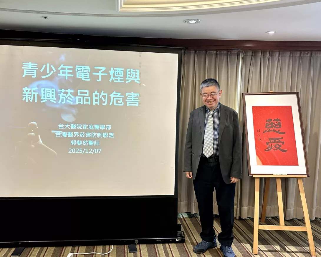 台灣青少年醫學暨保健學會、財團法人李氏慈愛青少年醫學教育基金會、台灣醫界菸害防制聯盟舉辦學術研討會,共慶20週年,邀請台灣醫界菸害防制聯盟秘書長、臺大醫院家醫部郭斐然醫師進行「青少年電子煙與新興菸品危害」專題演講。