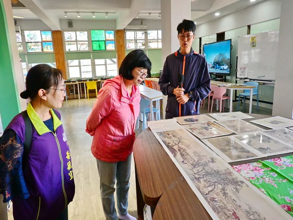 校長蘇月妙表示,學校近年積極爭取並打造圖書館2樓的展示功能,不僅是閱讀空間,更是多元啟發的學習場域。此次特別與故宮南院合作,展出多幅以動物為主題的名畫複製品及雕刻作品,讓學童透過藝術欣賞,理解生命教育與愛護動物的重要性。另一大亮點「VR運動體驗展區」更是深受學生喜愛。孩子們透過穿戴科技眼鏡,彷彿置身夢幻情境,在虛擬空間中探索古今,體驗跨越時空的互動式學習。家長們也表示,這樣的科技應用讓孩子對學習更具期待感。
