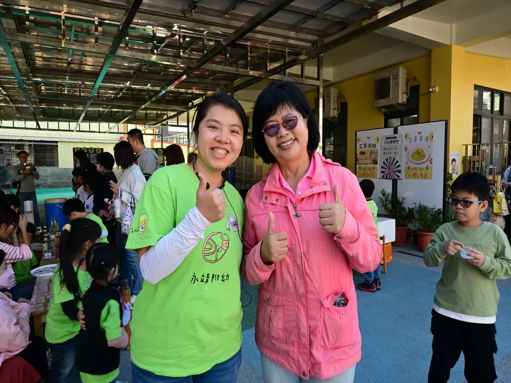 永靖國小校長蘇月妙帶領貴賓走訪幼兒園攤位時,對孩子們的表現十分驚喜。她說:「沒想到幼兒園的小朋友竟能如此大方自信,彷彿真正的小小老闆,專業地推銷商品、解說用途,令人耳目一新。」蘇校長指出,永靖不只是苗木之鄉,也盛產中藥草,具有深厚的植栽文化。當主任提出市集構想時,她便積極蒐集資料,甚至親自到鄉內種苗店把不同品種的艾草帶回校園展示,希望孩子能在生活中認識在地植物與健康知識,這些都是最實用、最自然的教育成果。