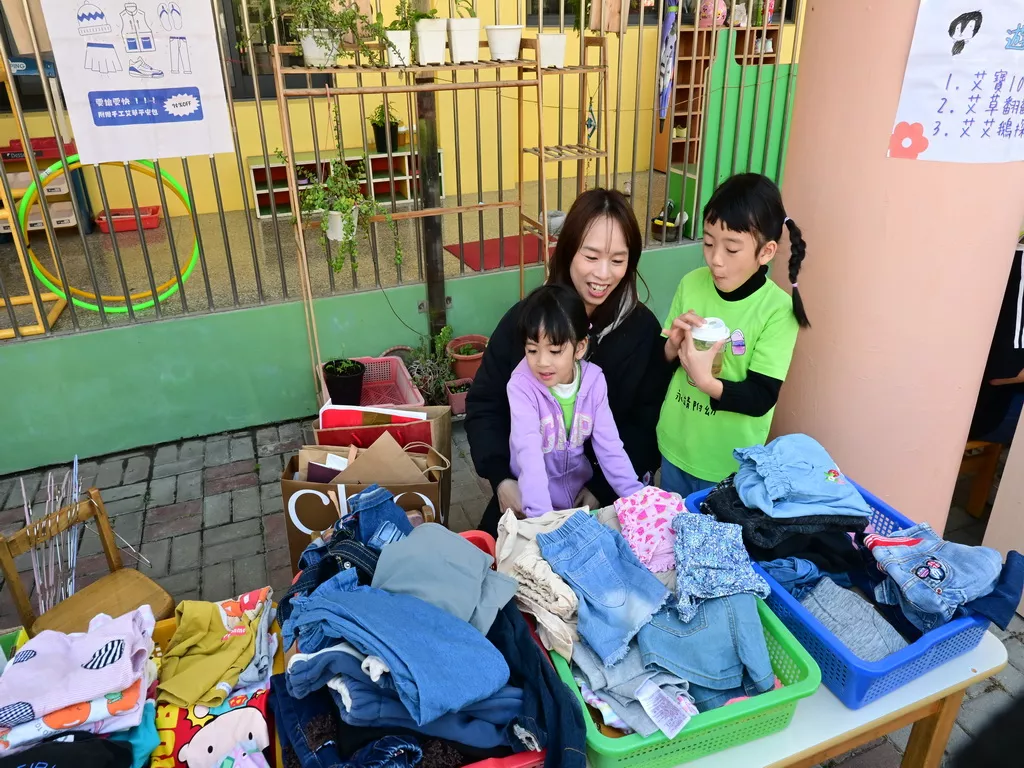 ▲由家長捐贈的二手衣市集攤位,將惜物與愛物的觀念傳承下去。(圖/記者周厚賢攝)