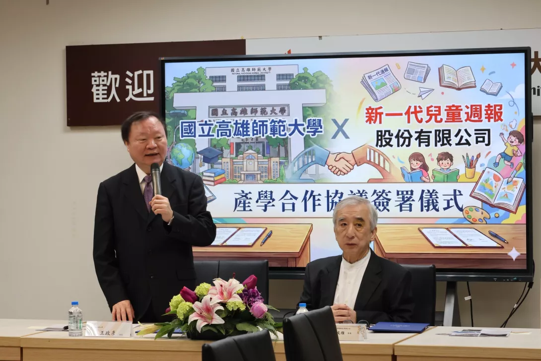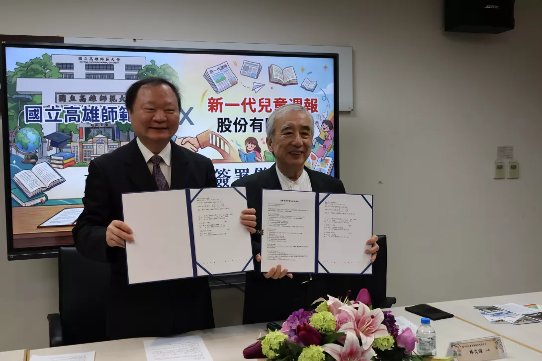 在全球教育持續強調跨文化理解、雙語素養與自我學習能力的今日,國立高雄師範大學攜手《新一代兒童週報股份有限公司》,於今(8)日上午假高師大和平校區,簽署「高師大新一代雙語兒童週報」產學合作計畫。本次合作不僅開創學界與媒體界的新頁,更象徵人文關懷、閱讀推廣與教育品質在少子化浪潮下,以更溫暖、更貼近生活的方式向前邁進。