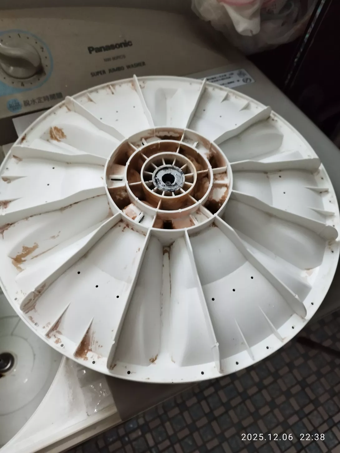 NW-90RCS-N雙槽洗衣機,洗衣槽盤脫落,主因洗衣機滾盤內軸齒輪磨損。