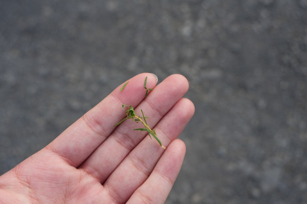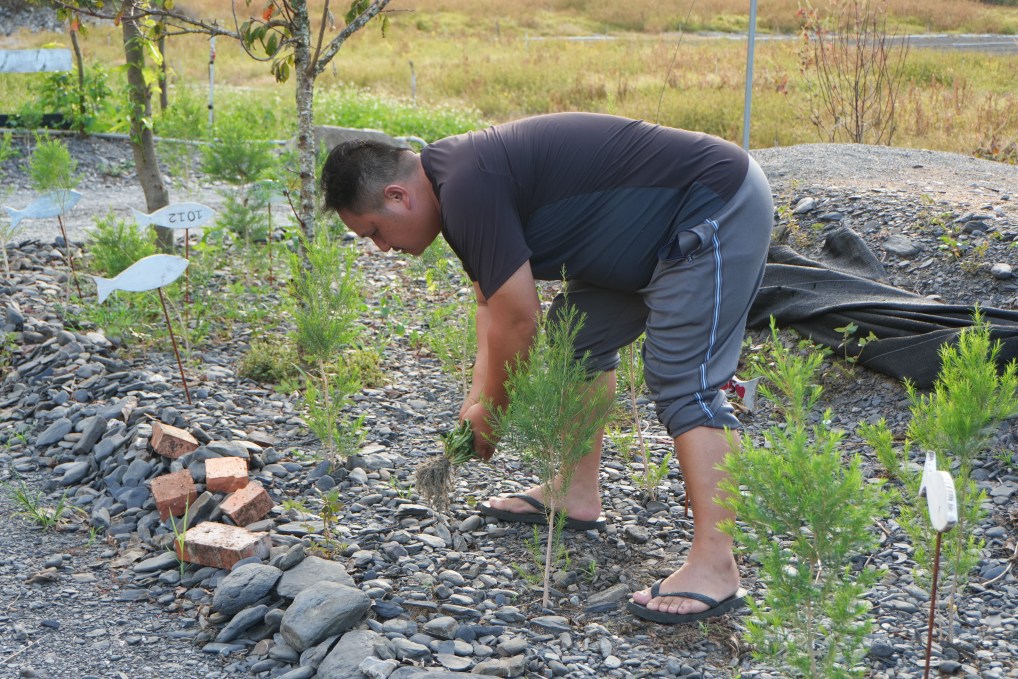 ↑樂水部落青年阿偉,親手將長在種植澳洲茶樹場域裡的雜草拔除。攝影/蘇妍柔