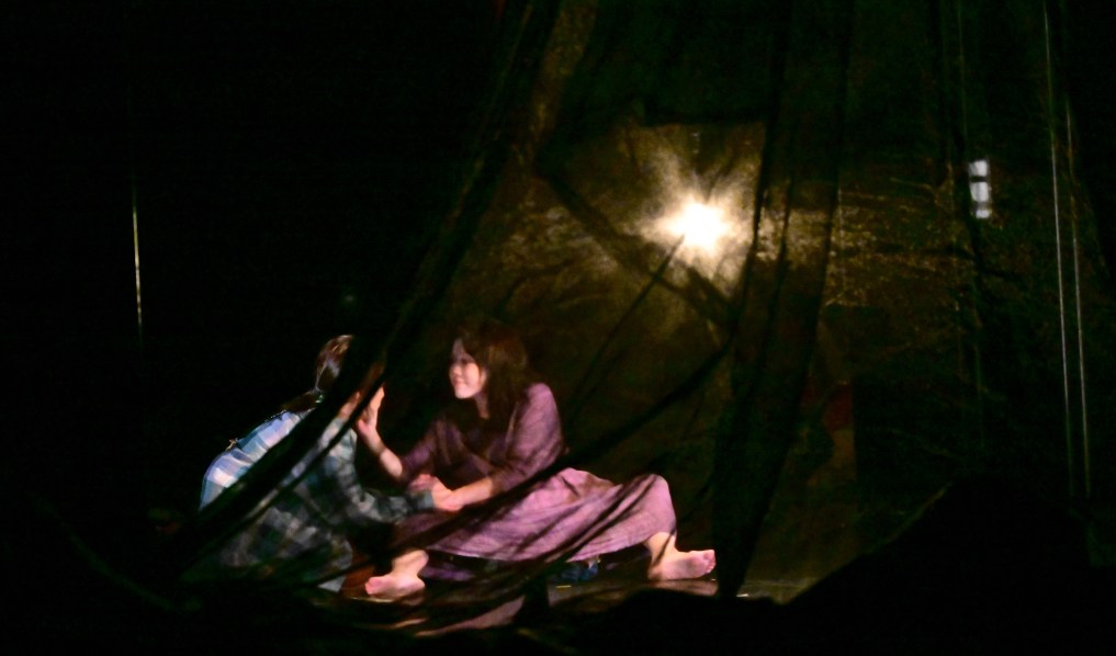 船隻遭到襲擊後,劇中以象徵手法呈現十九具破碎人形被就地掩埋,舞臺中央設置深洞象徵被掩埋的記憶,堆疊衣物代表逝去生命,演員將衣物拖入洞中,表現歷史與個體遭掩蓋的殘酷,同時避免極端血腥的直接呈現。雖然現實被掩蓋,但舞台讓亡者重新現身。孕婦與年輕女性難民的靈魂回到當下,與連長、士兵對話、質問、辯論,尋求理解與和解。觀眾在靈魂對話中感受歷史的重量,也直面台灣作為難民之島的記憶。作品從暴力與心靈破碎,走向靈魂與歷史的重逢,提醒人們唯有誠實面對過去,才能帶著歷史前行。