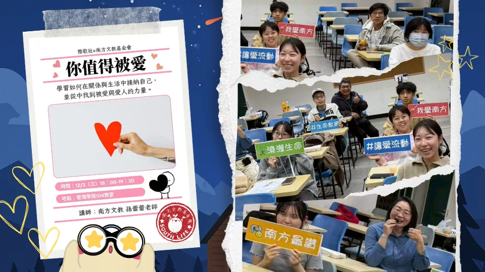 由財團法人南方文教基金會精心策劃的生命教育講座《你值得被愛》,帶領學生們展開了一場關於自我接納與真愛價值的溫馨探索之旅。