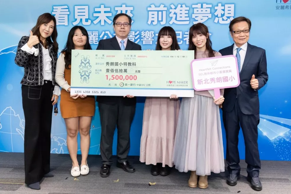 「秀朗國小特教科」致力推動SEL社會情緒學習課程,榮獲150萬追夢基金。安麗希望工場慈善基金會/提供