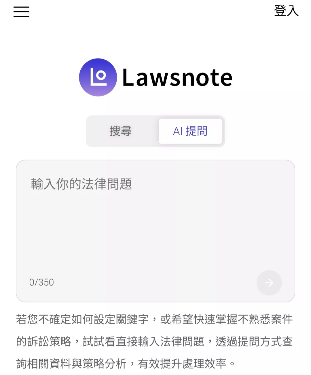 Lawsnote唯一缺點是,提問僅限350個字,導致複雜問題,在限制350個字的情況下,用戶必須自己分割。