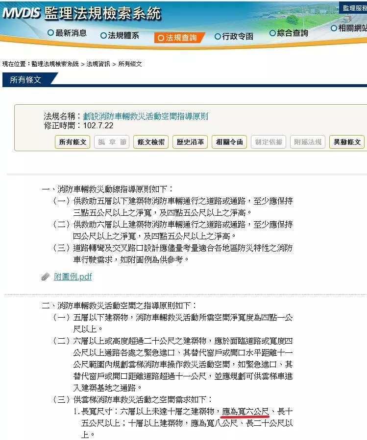 法規名稱: 劃設消防車輛救災活動空間指導原則