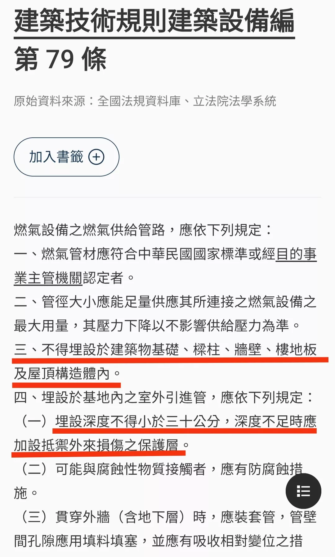 建築技術規則建築設備編第79條,看,「三、不得埋設於建築物基礎、樑柱、牆壁、樓地板及屋頂構造體內」,暨「(一)管線埋設不得小於30公分」,這是法令唷!