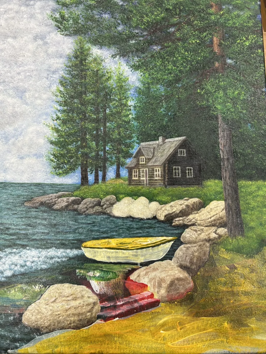 課堂上,學員們展示了他們筆下的擬真風景。老師親自示範,強調*「筆觸的轉換」與「色彩的堆疊」是創造立體感的關鍵。他悉心講解了複雜的繪畫原理,從「透視的原理」、「明暗的表達」,到高難度的景物處理,如如何繪製「水波的紋理」、表現「立體雲層的畫法」,以及如何透過光影層次呈現「石頭的紋路與明暗」。