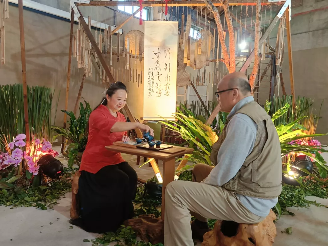 今年規劃「人之間、茶之道、山之境、旅之所、茶之味」五大展館,以輕鬆好逛的方式呈現嘉義茶文化與地方特色。多元的場館讓當天遊客目不暇給,以沉浸式五感體驗營造山林氛圍的「山之境」、由五大茶區茶人親自布置的「人之間」茶席體驗館、匯聚職人茶及咖啡品牌的展銷館等;園區還打造了多處自然系打卡熱點,包括穀倉星巴克前以綠意與光影構成的「茶引山行」山間小徑、自然媒材打造的竹香茶屋等,讓民眾一走進園區就能體驗到嘉義山林的氣息。
