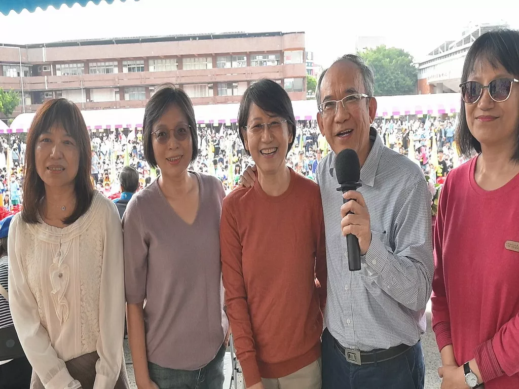 ▲校友陳昭吟(右三)與夫婿黃志超(右二)及姊妹們皆為員林國小畢業生,後來姊妹們分別考上北一女與中女中中而在社會上奉獻長才榮耀母校。(圖/記者周厚賢攝)