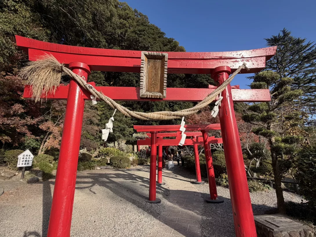 沿著園路前行,鮮紅色的鳥居慢慢出現在霧氣與綠意之間。白龍稻荷神社靜靜地坐落在園區一角,千本鳥居形成一條通往信仰的通道。