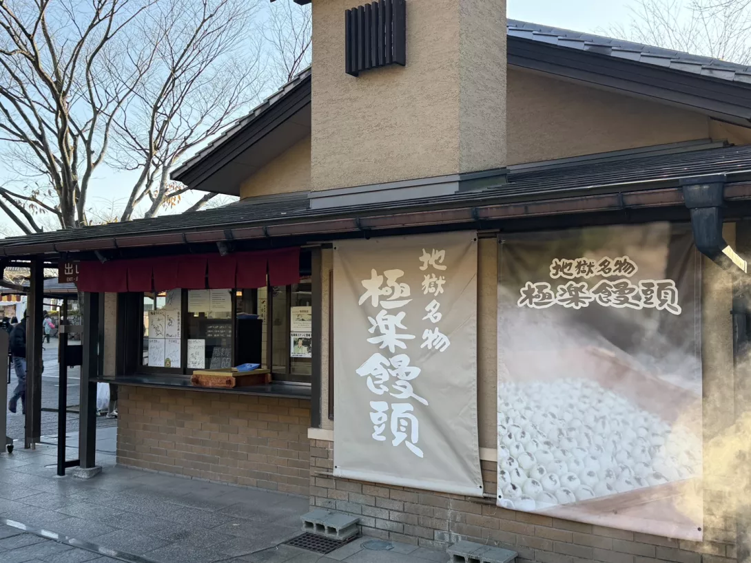 出口的地方販售不少地熱溫泉特色的限定商品,像是利用地獄溫泉蒸汽製作的溫泉蒸布丁,口感滑順、帶著淡淡香氣,還有不少人專程為它而來的地獄蒸饅頭,熱呼呼地入口,特別有一種「在地才吃得到」的感覺。