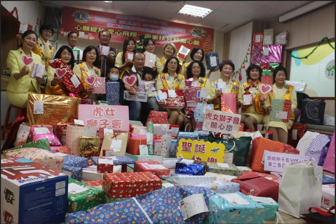 虎女獅子會楊明婉會長歡喜稱呼自己都成了聖誕奶奶,與獅姊們大家努力採買與花巧思包裝,希望家扶兒童歡欣獲得禮物與祝福,讓聖誕鈴聲歡樂圍繞迎接新的一年。
