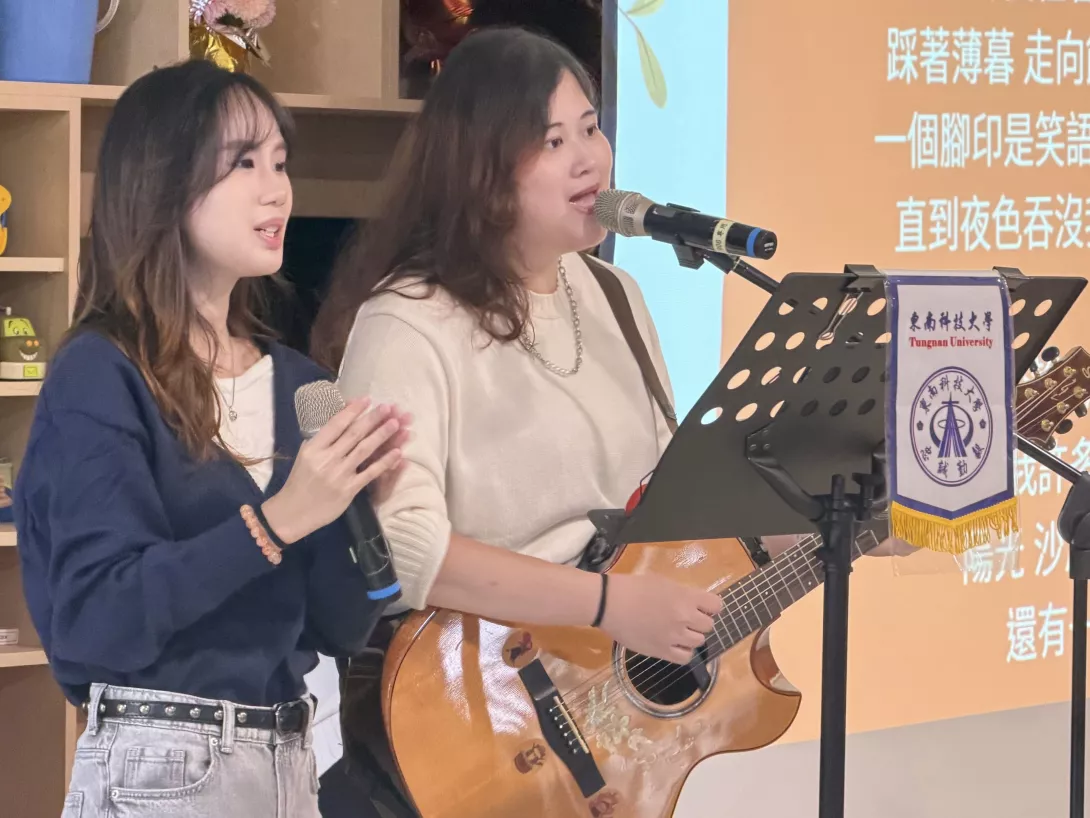 此次演出亦由東南科大表演藝術系二年級劉于恩同學共同參與。劉于恩同學日前於財政部北區國稅局主辦的「青春順稅e起FUN聲」歌唱大賽中奪得第一名,用最溫暖的心回饋與表達感謝,以最純粹的心情,站在長者面前唱歌、互動、傾聽。