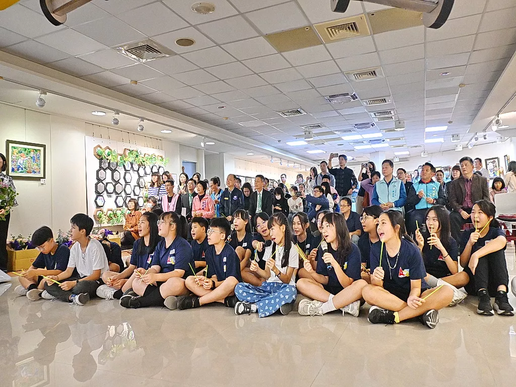 開幕典禮中,僑信國小校長黃榮森以學姊們的創作成果為榮,並親自為貴賓導覽各件作品,細心解說創作構思與技法。他表示,在指導老師的引領下,每一位學生都能發揮無限創意,並嘗試結合科技元素,突顯當代藝術特色,使美術不再侷限於平面繪畫,而是透過隨手可得的材料與科技融合,展現孩子們對文化傳承的思考與創造力。
