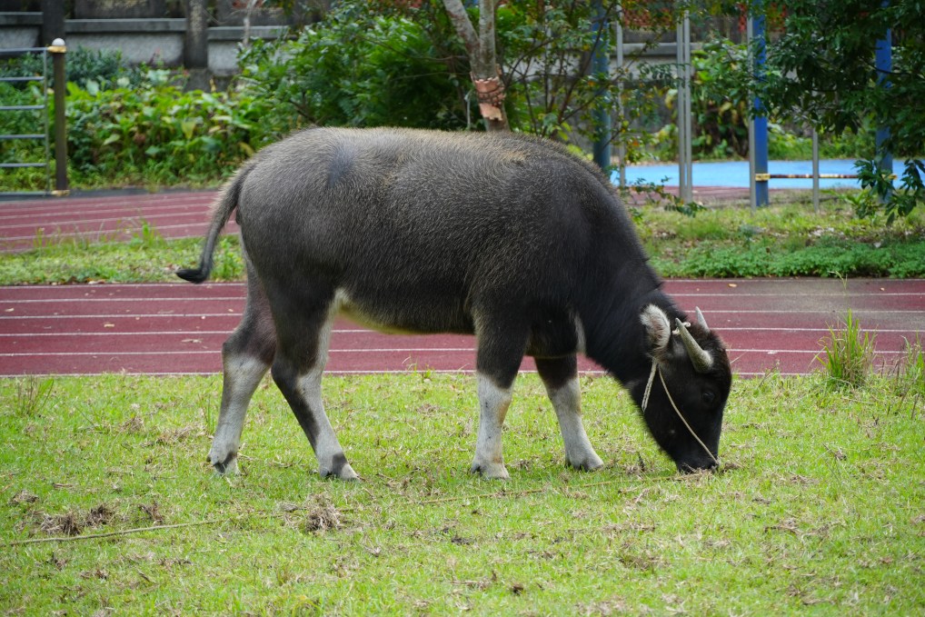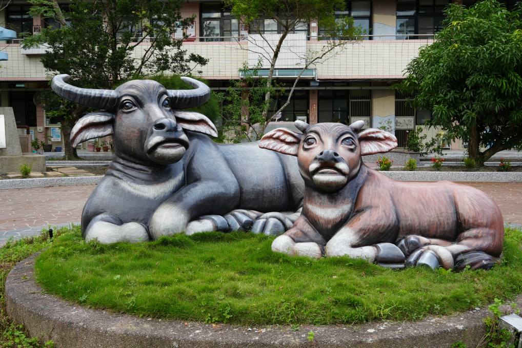 ↑位在貢寮國小內的水牛雕像。攝影/賴貝怡