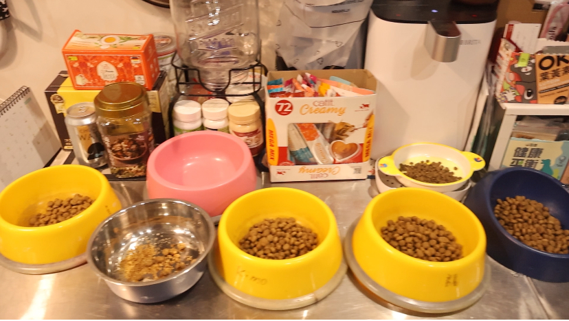 ↑每一餐需依照每一隻狗的需求,準備不同的飼料。攝影/林孟臻
