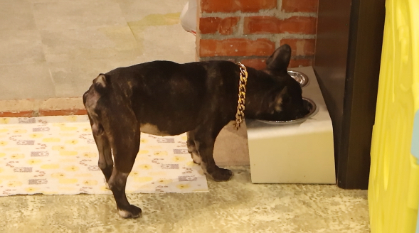 ↑老犬脖子僵硬,飯碗都會特別墊高,減輕牠們的壓力。攝影/林孟臻