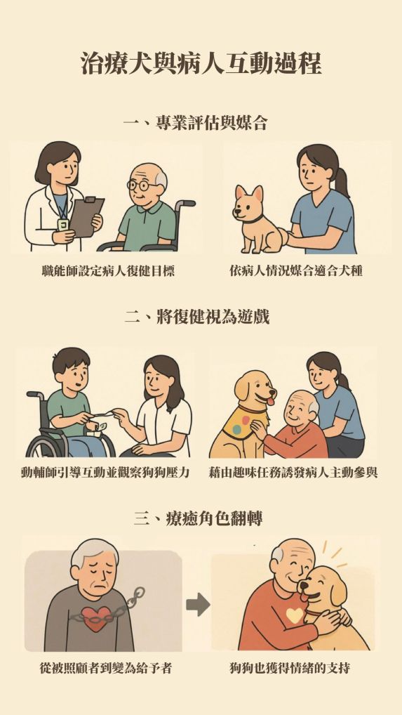這場專業介入,不僅保障了毛夥伴的福祉,更讓醫療場域中冰冷的數字,轉化成充滿溫度的雙向流動。當我們懂得彎下腰看夥伴的反應、在離別中學習祝福,這條復健之路才真正走出了雙向共好的可能。