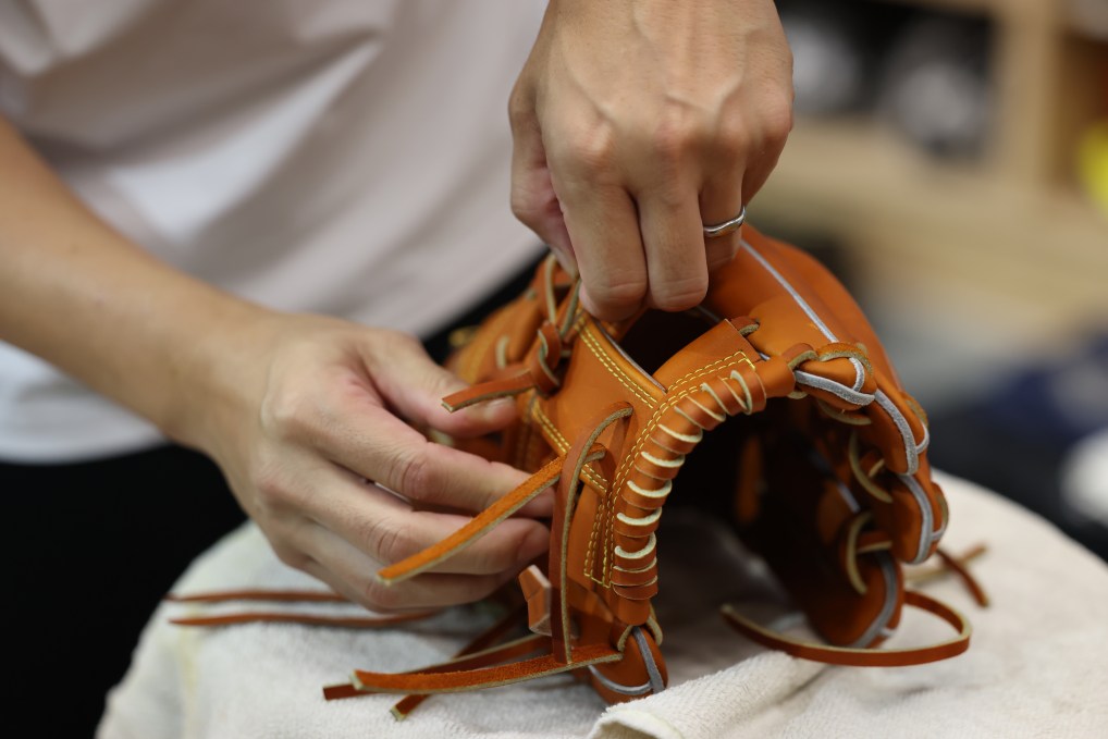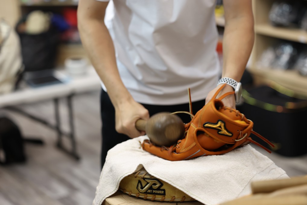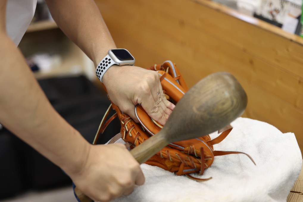 • ↑手套尚未調整完成,需要經過反覆敲打和揉製才能進行下一步。攝影/吳綵均