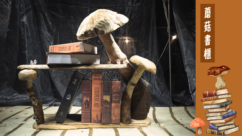 ↑蘑菇書櫃以森林裡悄悄長出的蘑菇為靈感,每一朵蘑菇都由手工雕刻而成,並搭配天然紫水晶作為點綴。製圖/蘇妍柔