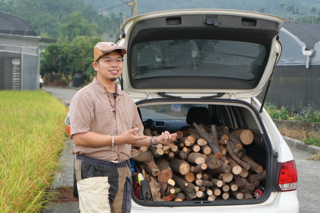 進入森林科後,他開始接觸樹木辨識、木材加工與林業相關課程,也重新思考一個從小藏在心裡的疑問:「那些他最喜歡撿回家的小樹枝,最後都去了哪裡?」在國小、國中時期,他發現校內有像廢棄樹枝葉的堆置場,學生在外掃區清掃完的落葉會倒在那裡,一段時間過後會有人來清走。直到就讀中興大學生物產業管理學系,經過更多研究後才發現,這些被清掃、修剪下來的樹枝葉,最終會與一般垃圾一起被送進焚化爐焚燒。