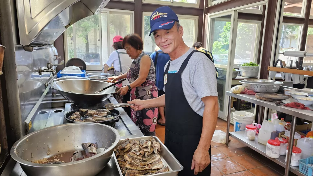 大洲社區寬敞、採光明亮的廚房裡,志工們按著各自分工忙中有序地工作,社區總幹事林麗玉體恤地表示,志工是社區的寶,要好好照顧他們,所以長青食堂有5個班在輪值,每週一天不至於太累,為了緩解高溫悶熱的不適,廚房更是從早上整理食材、備料就開冷氣,讓志工覺得受重視,做得更開心。