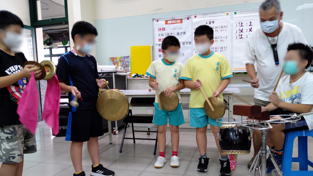 ↑孩子們跟隨鼓聲節奏敲打鑼鼓,用音樂為表演增添生動氣氛,也體驗團隊合作的樂趣。照片提供/大氣團