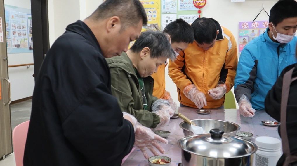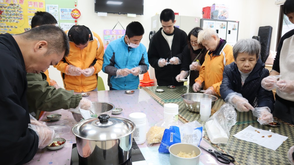 • ↑在等待甜湯熬煮的空隙,老師帶領院友們進行一些小活動鍛煉他們的行動力。攝影/池亮庭