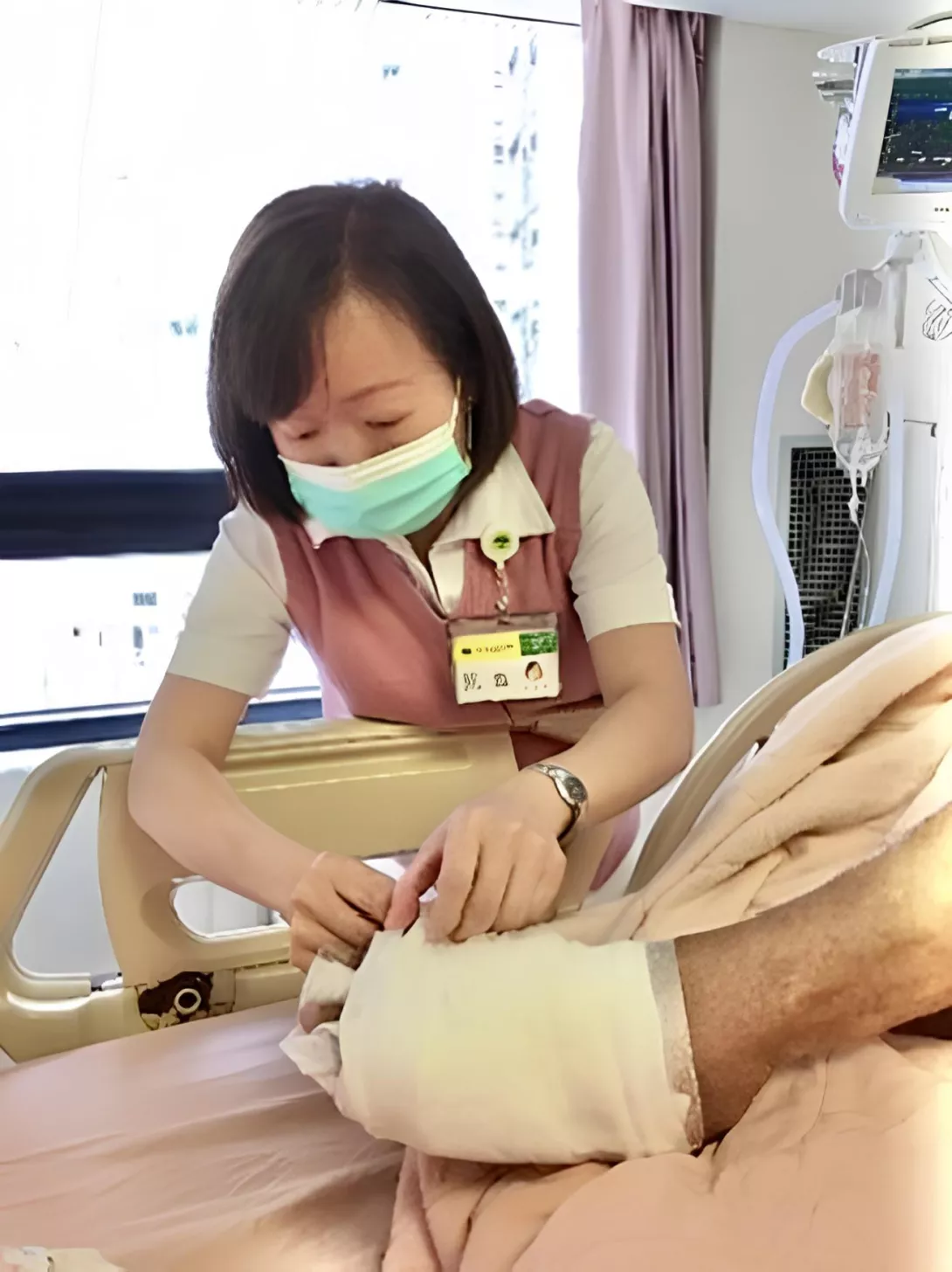 她長年投入的,是「傷造口護理」一項高度專業、卻經常被忽略的照護工作。面對長期臥床、糖尿病、癌症潰瘍等複雜傷口,傷造口護理師的角色不只是換藥,而是從營養狀況、壓力來源、排泄問題到生活環境,進行整體評估。這些工作,往往發生在病人最脆弱、也最不願被他人看見的時刻。