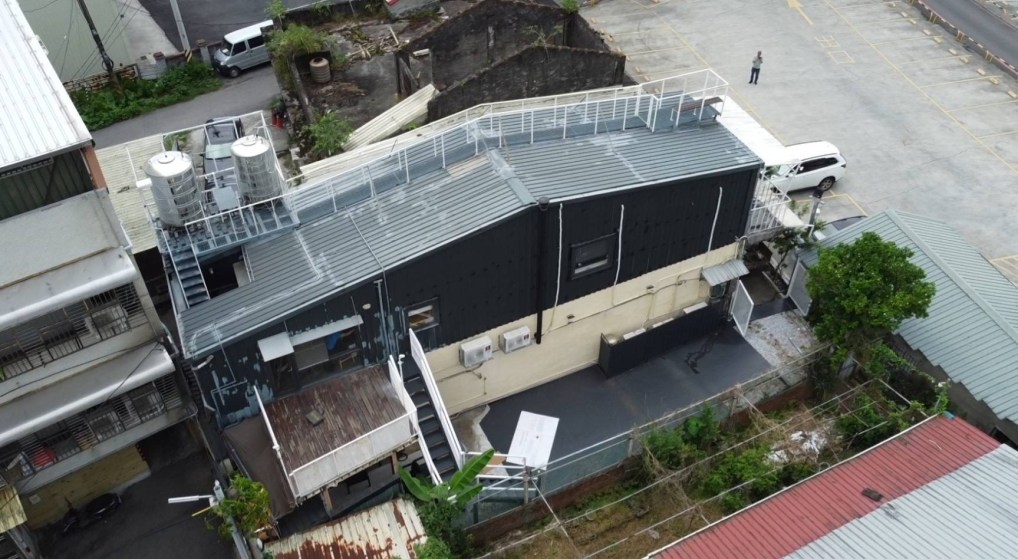創新亦體現在永續設計上,由於這座翻新老屋的部分屋頂採用鐵皮結構搭建,其固有的物理特性導致每逢夏季高溫時,室內空間便會面臨猶如烤爐般的挑戰。為此,簡明輝運用其建築專業知識,為這座老屋導入了一套創新的智慧節能機制:在斜屋頂上設置了自動感測裝置,當偵測到屋頂溫度達到預設的三十六度時,系統會自動啟動灑水降溫。更精妙的是,這些用於降溫的水源並非浪費自來水,而是來自平日裡收集的雨水。當屋頂溫度回降至攝氏三十度時,灑水即會自動停止。這套以回收雨水為介質的自動灑水系統,不僅成功地避免了鐵皮屋頂在夏日變身烤爐,大幅減輕了室內空調負荷,更具體落實了設計者對環境的節能責任與零廢棄的永續觀念。