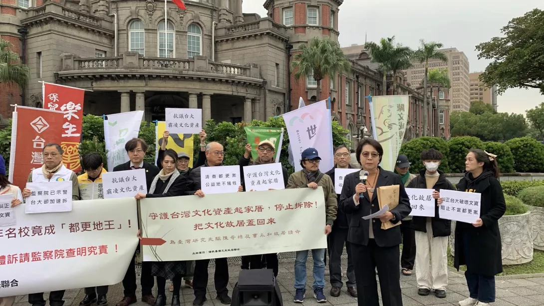 多個文史、學術及公民團體日前赴監察院陳情,抗議國立台灣大學無視文資保護,火速拆除曹永和、陳奇祿等學術巨擘的百年故居。